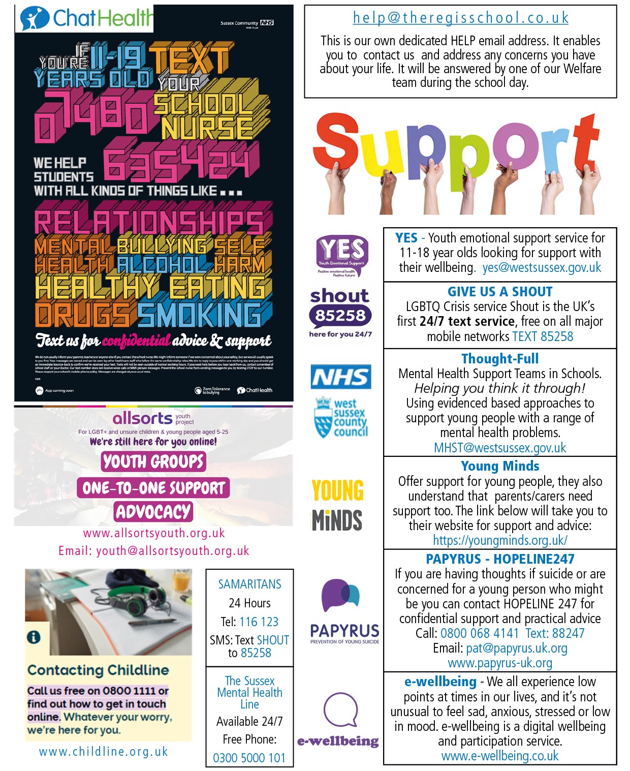 Students only, to report a worry please contact: